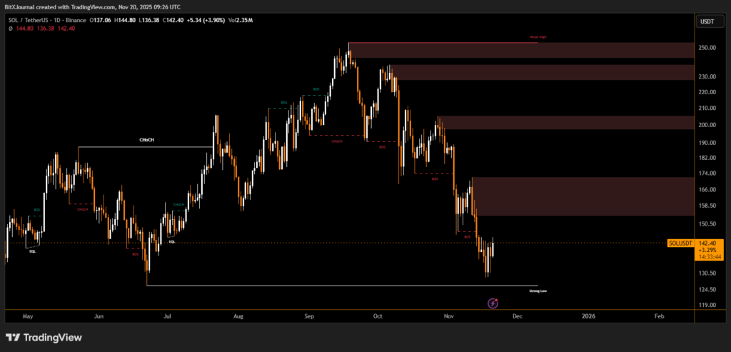 Despite the positive ETF activity, SOL has fallen roughly 14% over the past week, dragged down by a broader market correction.