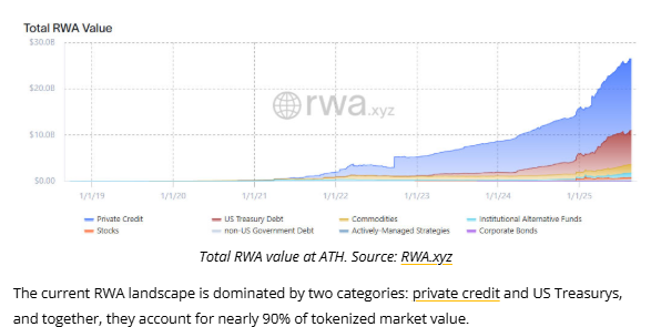 According to a recent study by Animoca Brands, the current RWA market stands at $26.5 billion, marking a 70% growth since the start of 2025. Despite this milestone, the sector still represents only a fraction of the global TradFi market, signaling massive growth potential ahead.