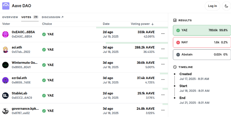 In a recent governance vote, 99.8% of Aave token holders supported the ARFC (Aave Request for Comment) to move forward with deploying a white-label version of its lending system on Kraken’s Ink chain. The next phase involves a full Aave Improvement Proposal (AIP) for onchain voting.