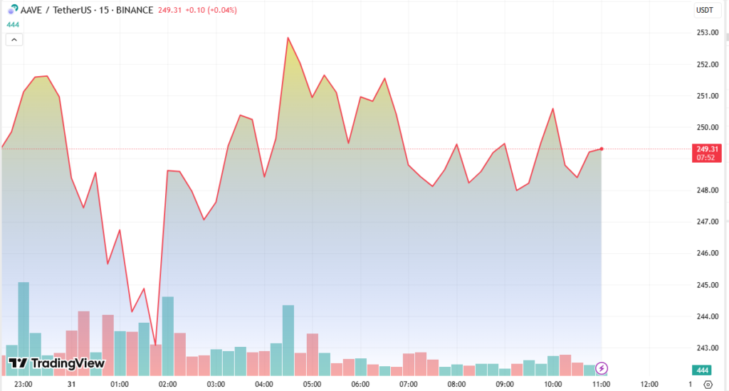 AAVE has rebounded strongly from a 15% price decline, showing renewed strength as decentralized finance (DeFi) yield markets gain traction. The token recovered from a low of $240 to over $250, driven by increased buying interest and favorable market developments within the DeFi space.