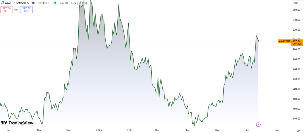 AAVE, a leading token in the decentralized finance (DeFi) space, has experienced a notable 25% surge since Monday, including a 3.8% gain in the past 24 hours. This rally has pushed the price above a critical resistance level at $311.50, signaling potential for further upside.