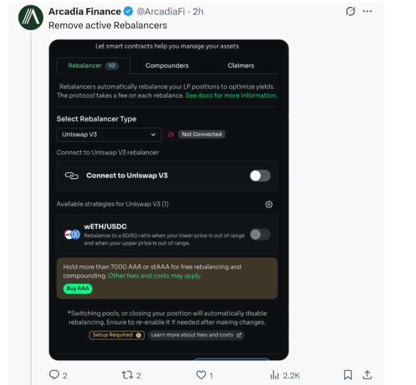 Users were urged to revoke permissions previously granted to Arcadia’s asset managers or rebalancer contracts immediately to prevent further damage.