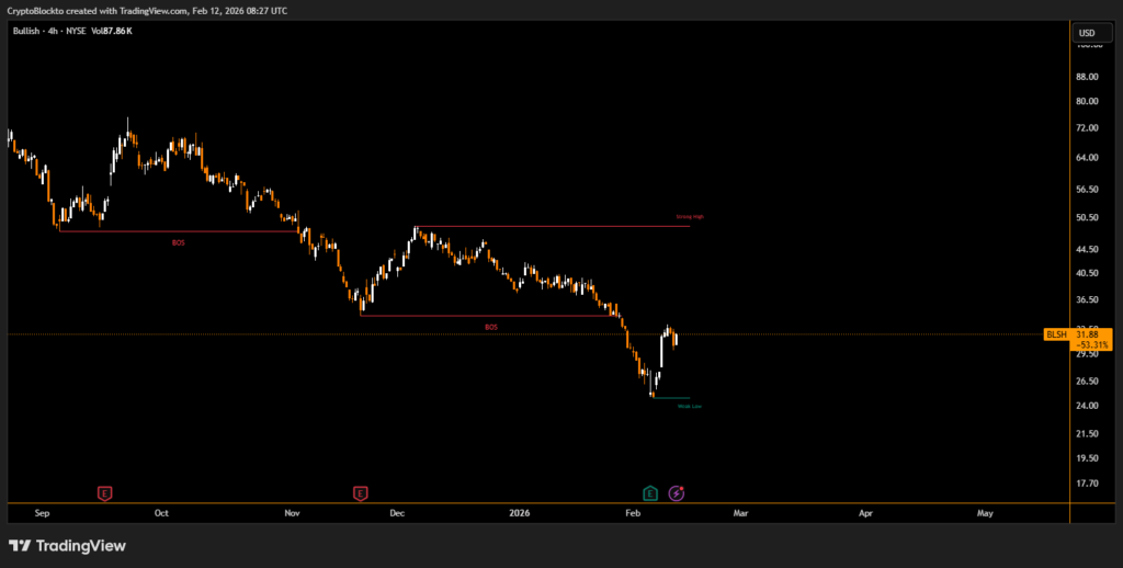 Bullish shares recently rebounded 28.3% over a five-day stretch after closing at a low of $24.90 on Feb. 9. The stock ended Wednesday at $31.88, down 0.5% on the day.