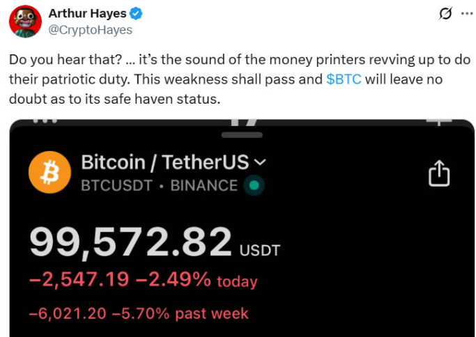 BitMEX co-founder Arthur Hayes reassured the market via X, stating: