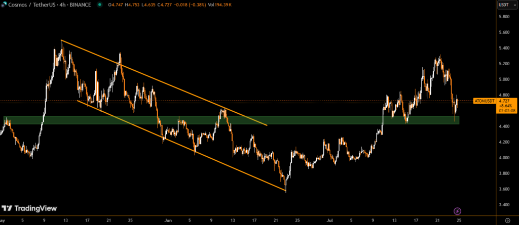 But ATOM’s ability to rebound quickly and hold ground above $4.70 suggests it may be better positioned than peers during this consolidation. Strong technical structure, volume validation, and quick dip absorption are giving traders reason to keep it on their radar.