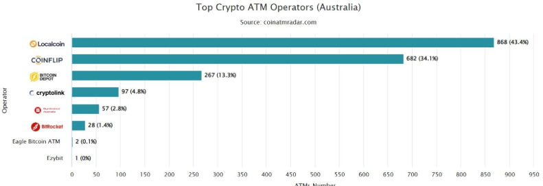 Australia has rapidly become one of the largest markets for crypto ATMs, now ranking third globally with 2,008 active machines, up from just 67 in August 2022, according to data from Coin ATM Radar.