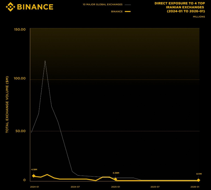 According to figures shared by the exchange, direct exposure to four major Iranian trading platforms fell from $4.19 million in early 2024 to about $110,000 by January 2026. The company described this reduction as part of a broader effort to strengthen compliance controls and align with international regulatory standards.