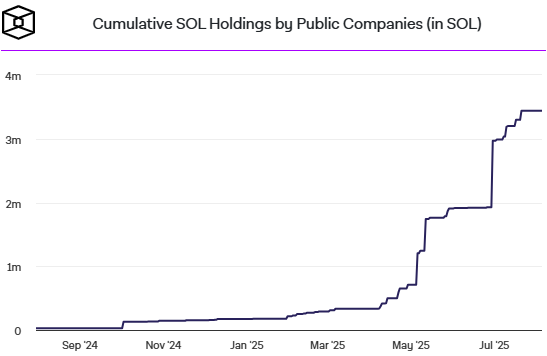 According to industry trackers, corporate treasuries collectively hold over 3.4 million SOL, equivalent to $568 million as of August 5. This growing demand underscores Solana’s rising status as a favored asset for institutional portfolios, not just retail investors.