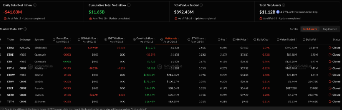 Spot ETFs linked to Ethereum mirrored the pattern, recording $41.8 million in net outflows. iShares Ethereum Trust (ETHA) accounted for nearly $30 million of that total.