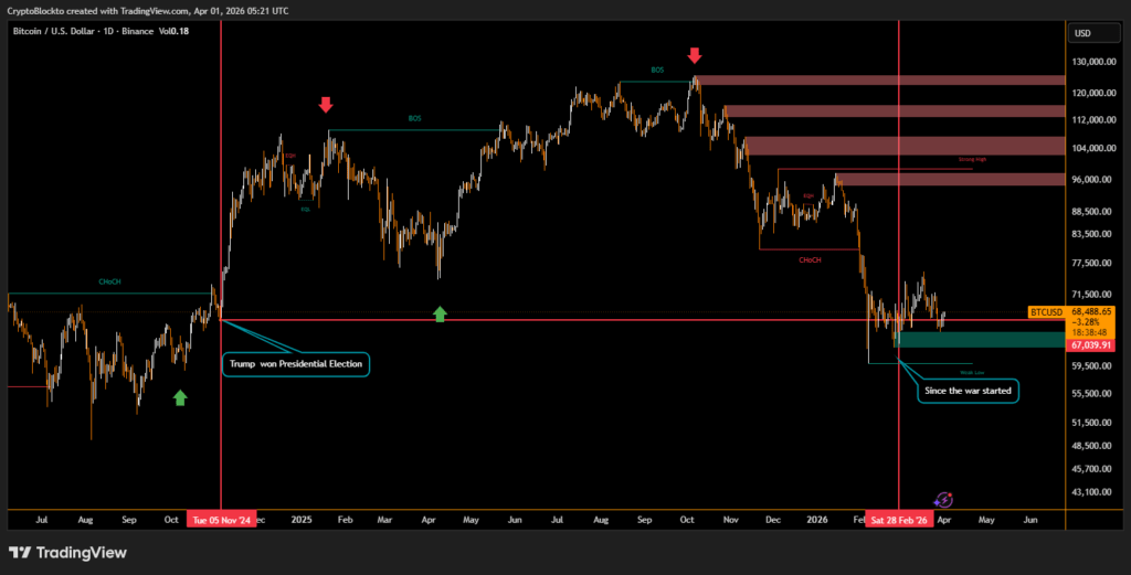 Bitcoin and U.S. stock markets moved higher after renewed optimism emerged around a possible end to the US and Israel-Iran war. Bitcoin briefly climbed to $68,589 before stabilizing above $68,000, as investors reacted to comments from U.S. President Donald Trump suggesting that options to end the conflict were being considered.