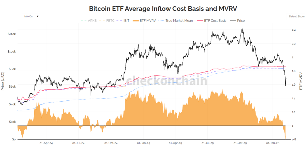 Another key factor is the average cost basis of US spot Bitcoin ETFs, estimated around $82,000. A sustained move lower would leave a large portion of ETF holders underwater, historically a condition associated with late-stage bear markets.