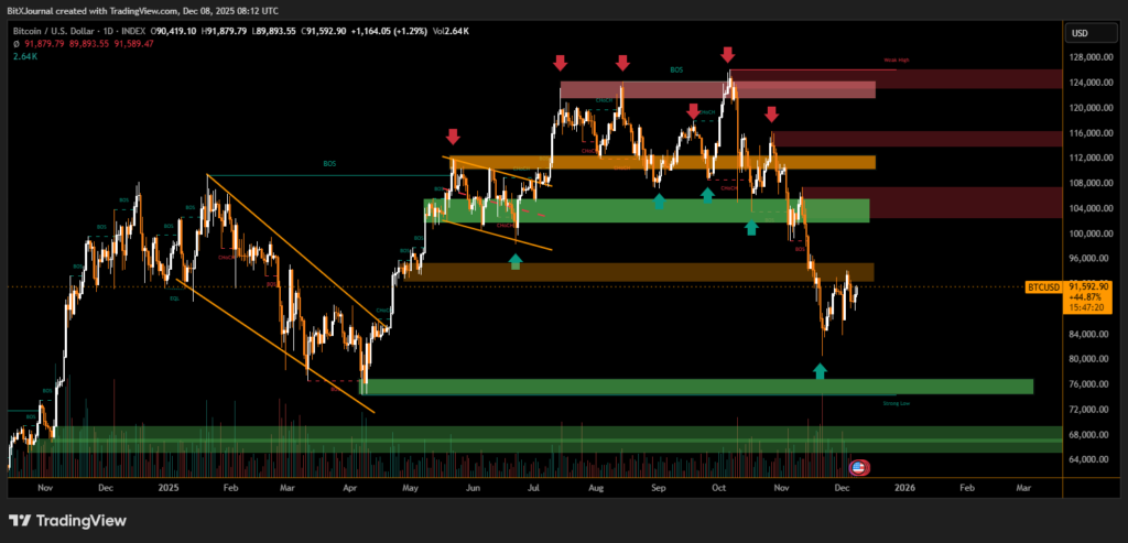 Over the weekend, Bitcoin briefly dipped below $88,000 during a sharp leverage flush that liquidated long and short positions. It quickly rebounded above $91,500, with market commentators describing the move as typical low-liquidity weekend volatility designed to wipe out overexposed traders.