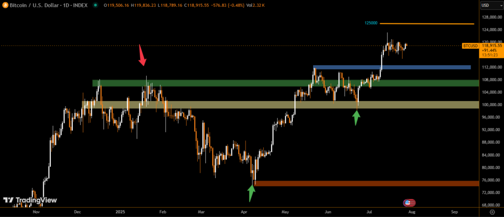 Whether it’s a pullback to support or a breakout above resistance, Bitcoin bulls have two well-defined setups to watch. As the market flirts with $120K, patience and precision may separate winners from latecomers.