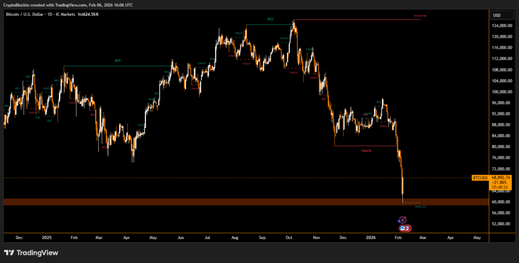 While no indicator can confirm a precise bottom, bitcoin has already rebounded toward $68,000. Historically, such extreme capitulation events have tended to occur late in downturns, suggesting downside risk may be narrowing, even if further volatility remains possible.