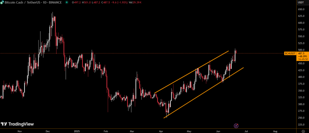 This breakout positions BCH as one of the top-performing mid-cap tokens in June 2025.