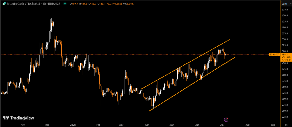 Bitcoin Cash (BCH) has emerged as one of the top-performing mid-cap cryptocurrencies in recent months, rising over 75% in 90 days and briefly touching $526.5 on July 1—its highest price in eight months. As of July 5, BCH was trading near $482.54, reflecting a modest retreat after its recent surge.