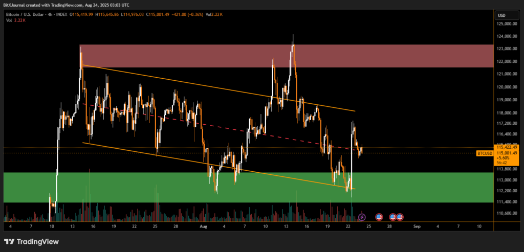 BTC nears $116,000 after Powell hints at monetary easing during Jackson Hole speech