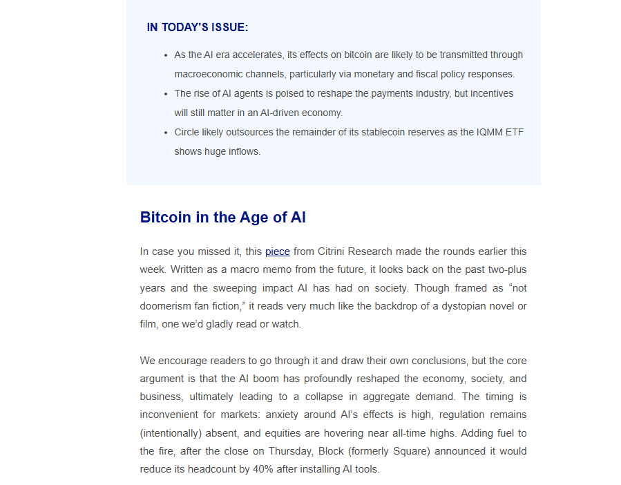 Cipolaro notes that if AI-led growth coincides with expanding liquidity and stable real interest rates, the environment could be supportive for Bitcoin. However, stronger economic growth that pushes real yields higher and reduces the need for policy accommodation may create short-term pressure on risk assets.