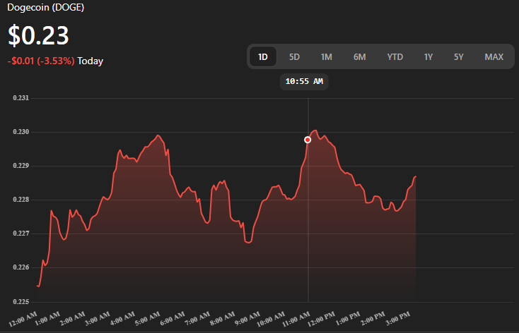 • DOGE dropped over 12.7%, now trading at $0.2287, down from an earlier high of $0.2374.