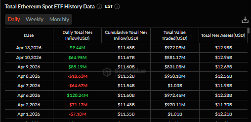 Another notable performer was the Morgan Stanley Bitcoin Trust ETF (MSBT), which maintained its inflow trend following its launch on April 8, accumulating roughly $68 million in total inflows. Despite these gains, the broader spot Bitcoin ETF market has returned to negative territory for the year, recording about $160 million in year-to-date outflows.