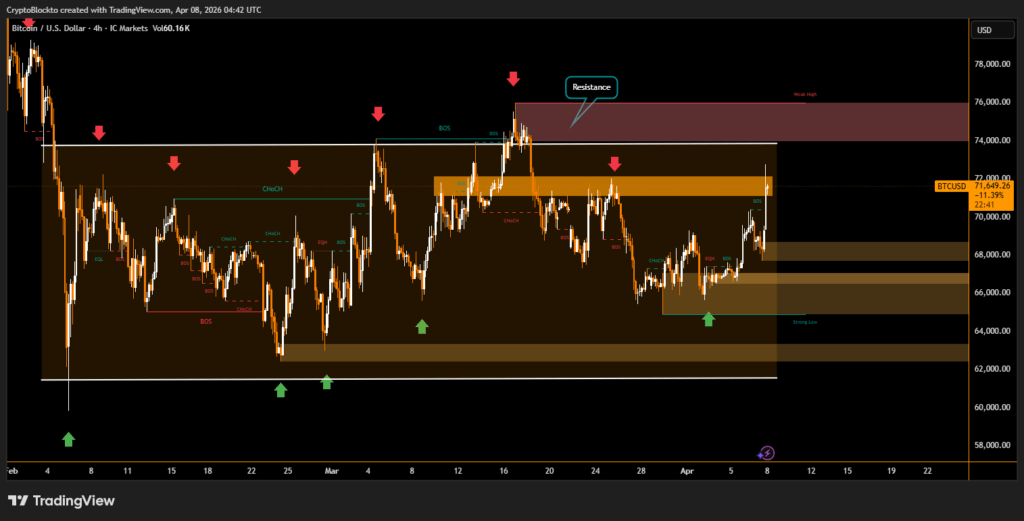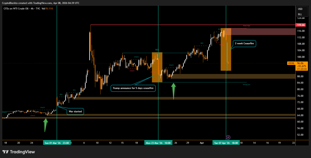 Before the ceasefire announcement, market sentiment had been heavily bearish. Bitcoin’s surge placed it near the top of the $65,000 to $73,000 trading range that has defined market movement throughout the conflict, leaving traders focused on whether the ceasefire will lead to a sustained breakout or another short-term reversal.