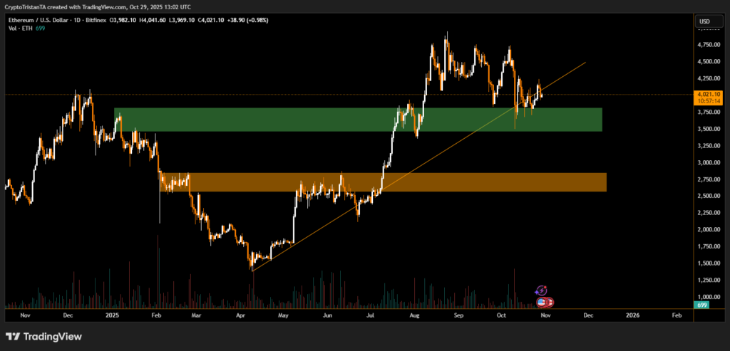 For Ether, the picture is similar. Around 375,000 call options and 262,000 put options — worth a total notional of $2.6 billion — are set to expire, with a max pain level near $4,110, compared to current prices around $4,000.