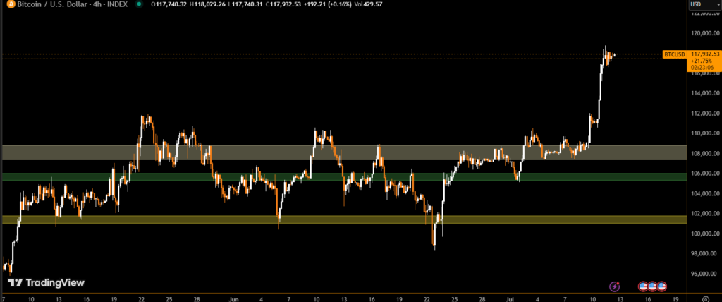 Bitcoin (BTC) surged past $120,000 this week, marking a significant milestone in the ongoing crypto bull market. The price movement was supported by strong inflows into U.S.-based spot Bitcoin ETFs, corporate treasury purchases, and tight supply conditions.
