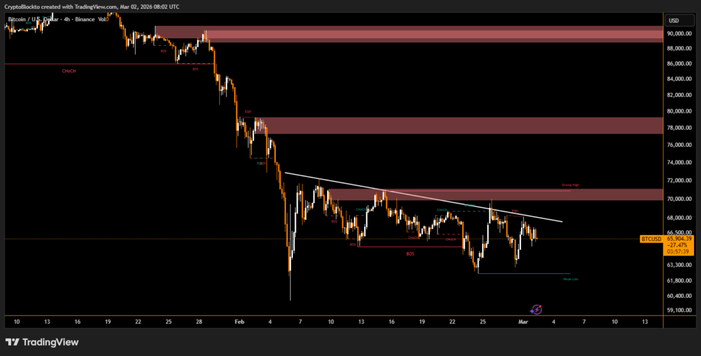 Bitcoin slipped below $66,000 on Monday as geopolitical tensions intensified following reports that Iran targeted oil infrastructure in Saudi Arabia. The pullback erased earlier gains that had briefly pushed the cryptocurrency close to $67,000 during Asian trading hours.