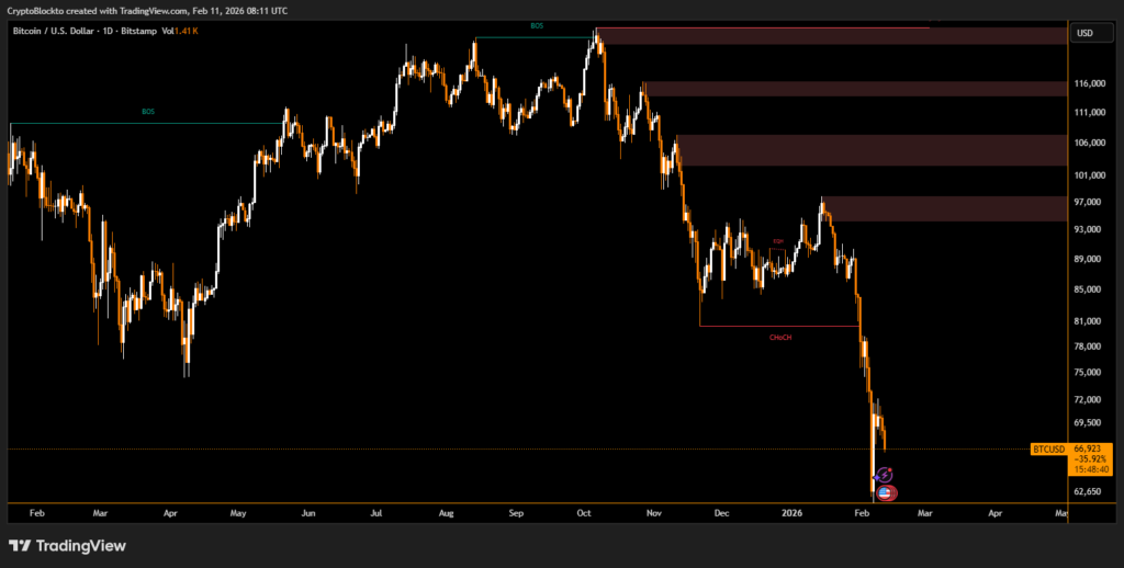 Traders are now closely watching the $60,000 to $65,000 range as a potential support zone for Bitcoin, while any signs of macroeconomic easing could help stabilize prices.