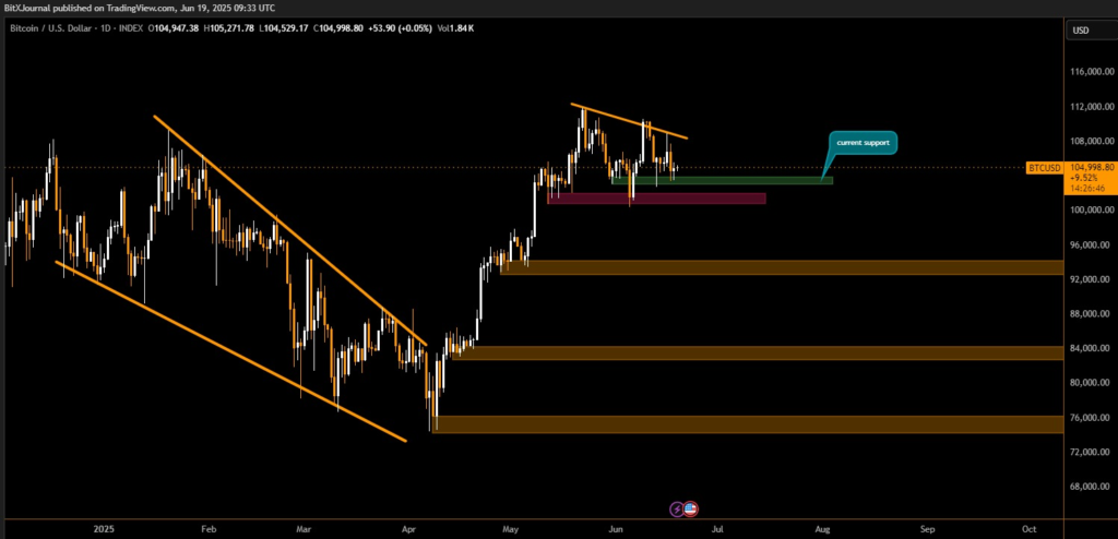 Bitcoin continues to trade sideways near the $105,000 mark, as the U.S. Federal Reserve held interest rates steady and signaled no imminent rate cut. Despite rising stagflation concerns, the central bank maintained its cautious “wait-and-see” stance—fueling market indecision across traditional and digital assets.