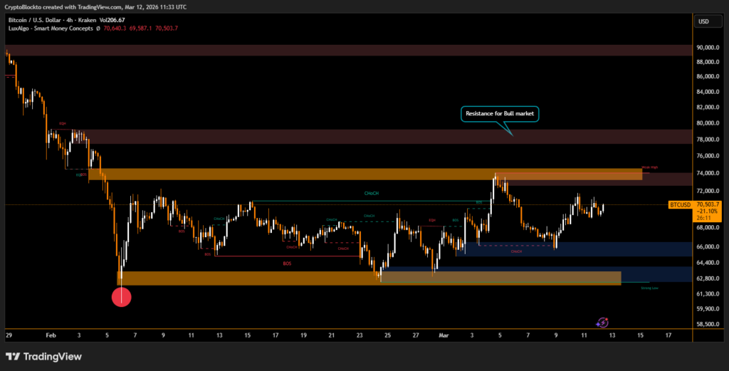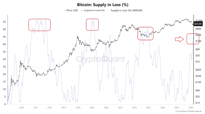 Crypyoquant On-chain data shows a 30-day net outflow of -30,800 BTC and a rising supply in loss, historically associated with periods preceding extended downturns. Whale activity indicates profit-taking from recent rallies, while retail investors accumulated on dips below $70,000, highlighting a potential divergence in sentiment across market participants.