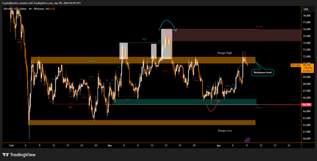 Bitcoin remained near the $71,000 level on April 9 as cryptocurrency markets pulled back following renewed uncertainty around the recently announced ceasefire between Iran and the United States. The two-week truce, which initially fueled a strong rally across global markets, began showing signs of strain less than 48 hours after its announcement.