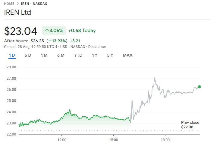 Bitcoin mining giant IREN posted its best quarterly results to date, reporting $187.3 million in revenue for the last quarter, a 226% year-on-year increase. This strong performance drove its stock price up 14% in after-hours trading, signaling renewed investor confidence.