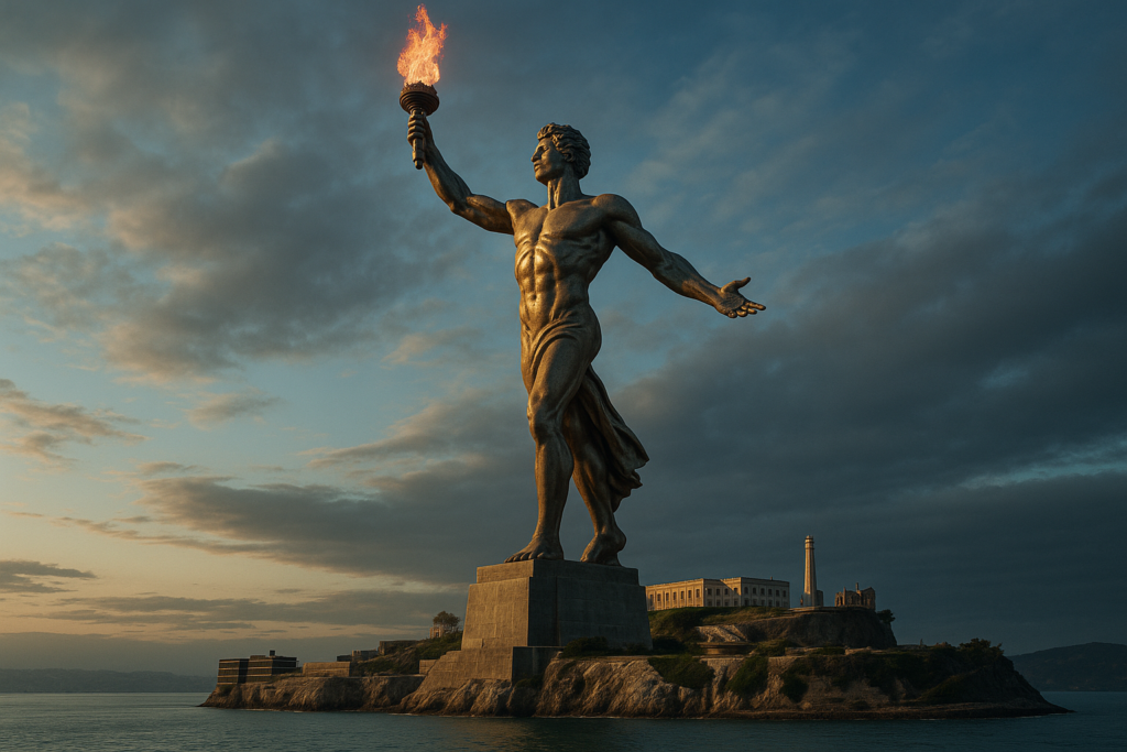 Ross Calvin, the CEO of Bitcoin mining firm Parhelion, has unveiled an audacious proposal to construct a 450-foot statue of Prometheus on San Francisco’s Alcatraz Island — a project estimated to cost $450 million, according to a Bloomberg report.