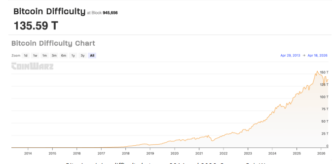 Bitcoin Mining Difficulty Falls to 135.5T Amid Industry Pressure