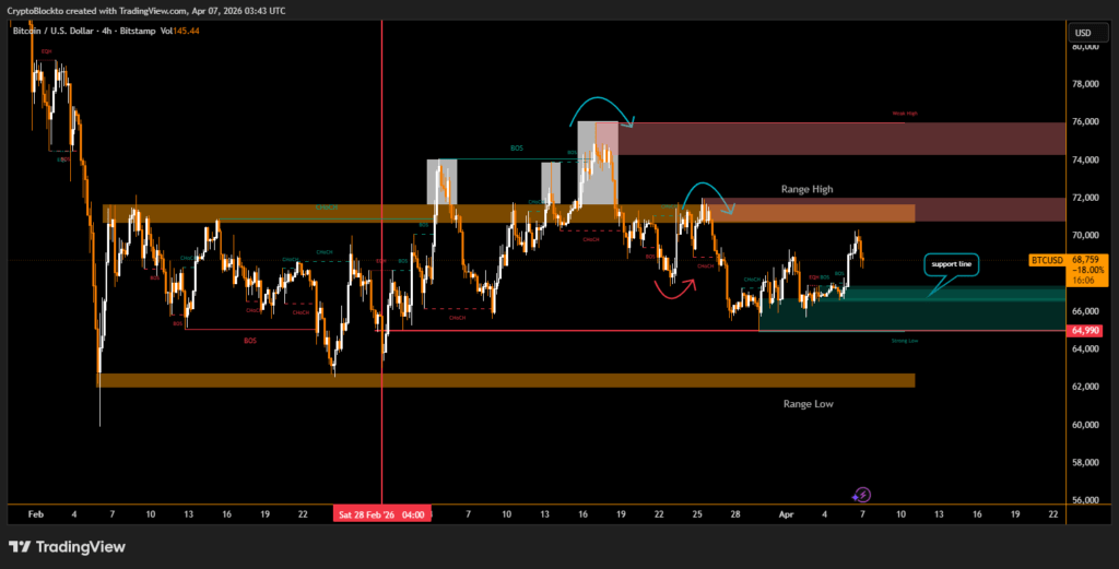 At the same time, significant supply remains concentrated near the $74,000 level, where investors who purchased at higher prices may look to exit during rallies. These combined pressures suggest Bitcoin’s calm trading range could give way to a sharper move if support levels fail.