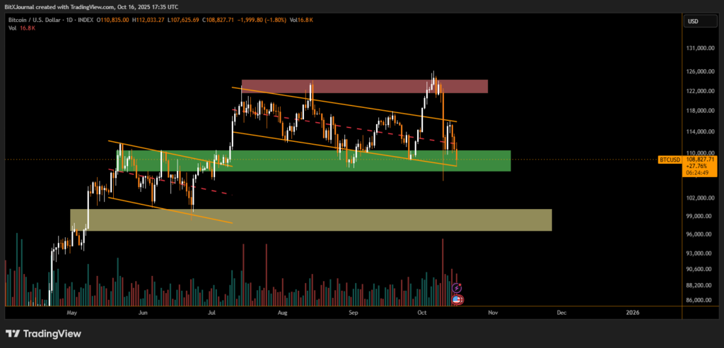 If support at $108K fails, eyes will turn toward the psychological $100K threshold, where strong buying interest could reemerge and shape Bitcoin’s next major move.