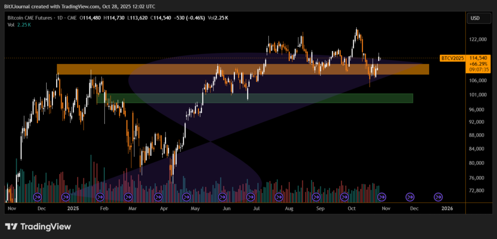 “The confluence of resistance levels near $115K, combined with the CME gap, suggests a potential near-term rejection,” noted BitXJournal market analyst. “Unless Bitcoin breaks and holds above this range, the path of least resistance remains lower.”