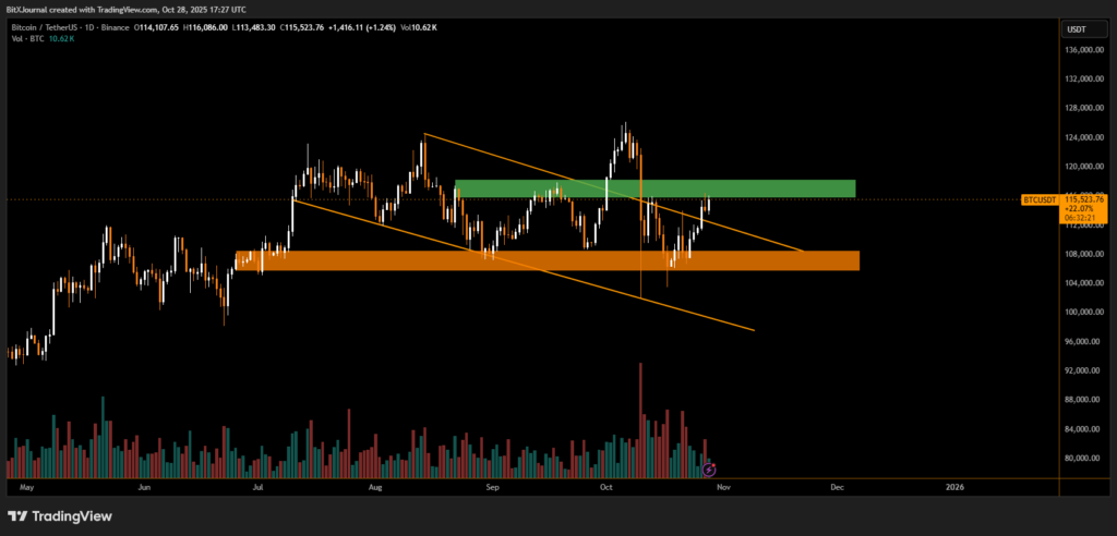 In short, Bitcoin’s rally remains intact but vulnerable — and the coming sessions could determine whether the market’s next major move heads toward $120,000 or revisits $110,000 support first.