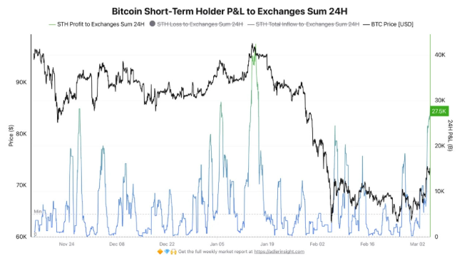 Cryptoquant data shows that short term holders accelerated profit-taking after Bitcoin’s earlier rally above $74,000. Analysts tracking blockchain activity reported that more than 27,000 BTC moved to exchanges from wallets belonging to short-term investors within a 24-hour period.
