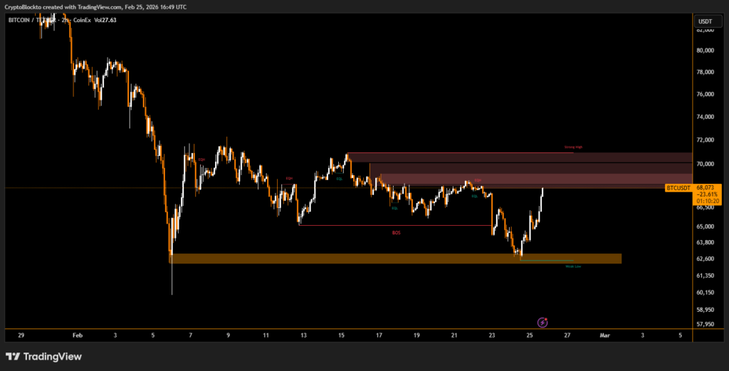 Bitcoin climbed above $68k on Wednesday, gaining more than 5% in 24 hours as bearish positioning across the market began to unwind. The rebound sparked a wider relief rally, lifting major altcoins and crypto-linked equities.