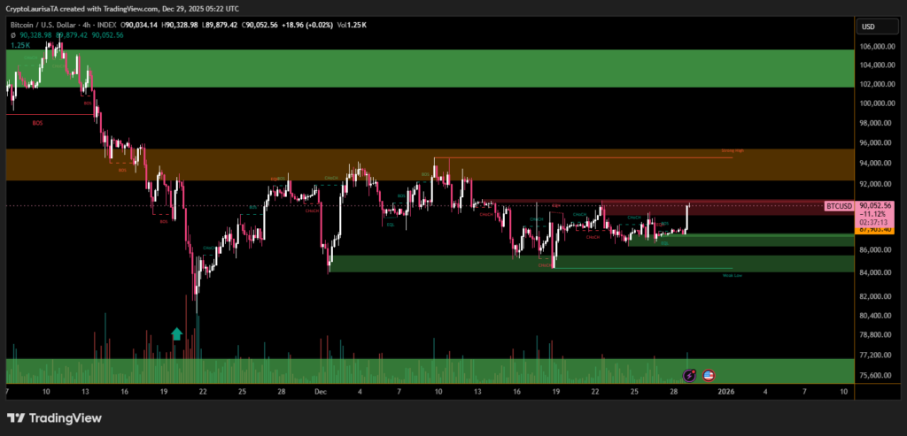Bitcoin opened 2025 at approximately $93,374 but is currently trading below that level. To close the year in the green, BTC must reclaim that price threshold. This comes after Bitcoin surged to an all-time high above $125,000 in October, followed by a sharp market-wide correction that erased nearly 30% of its value.
