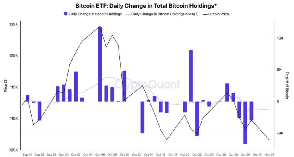 âSince then, spot demand for Bitcoin has been contracting,â Moreno said. âIn the U.S., investors have also lowered their exposure, as shown by negative ETF flows and a negative Coinbase price premium.â