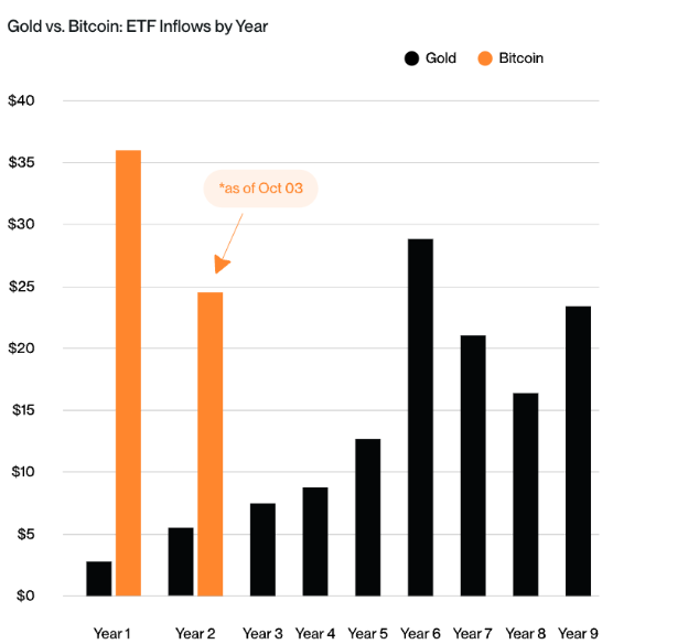 So far, Bitcoin ETFs have pulled in $22.5 billion in 2025, and Hougan believes inflows could exceed $36 billion next year as investor confidence grows. He noted that “higher prices often spur greater demand” since rising valuations attract both retail and institutional attention.