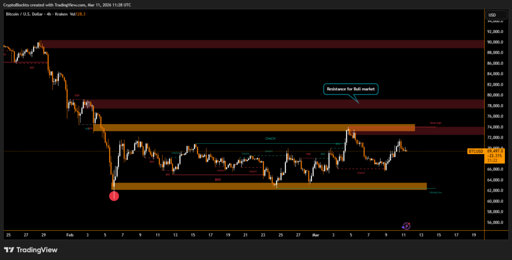 Bitcoin slipped to $69,500 on Wednesday as investors adopted a cautious stance ahead of the U.S. consumer price index report. Renewed tensions in the Middle East, including Iran laying mines along the Strait of Hormuz, contributed to heightened market uncertainty and pressured bullish momentum above the $70,000 mark.