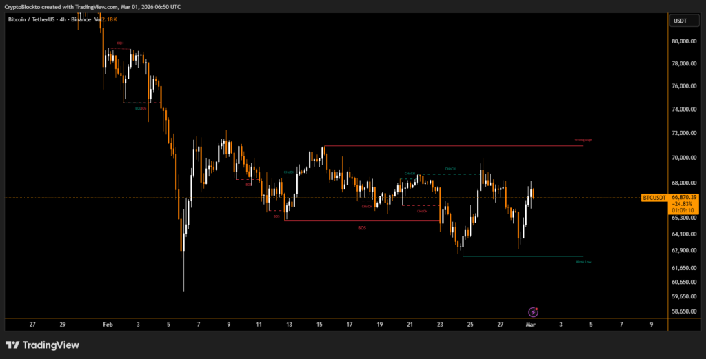 Bitcoin climbed past $68,000 early Sunday after Iranian state media confirmed that Supreme Leader Ali Khamenei was killed in joint U.S. and Israeli airstrikes. The rebound erased most of the previous session’s losses, when prices had fallen toward $64,000 amid escalating regional conflict.