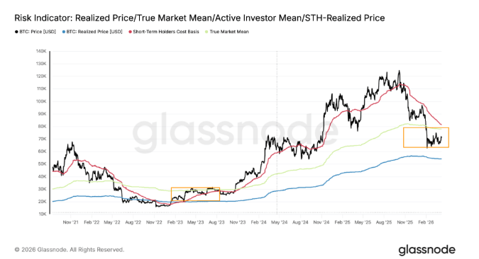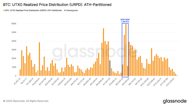 Onchain analytics from Glassnode indicate a strong resistance band between $78,000 and $80,000, aligning with the short-term holder cost basis. This zone is considered critical because investors who bought near these levels may sell to recover earlier losses.