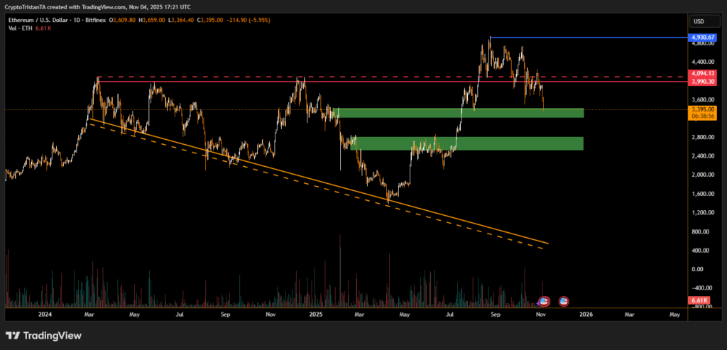 “Ethereum’s resilience above $3,300 is encouraging,” . “However, losing this zone could send ETH back toward the $2,800 region before buyers step in again.”