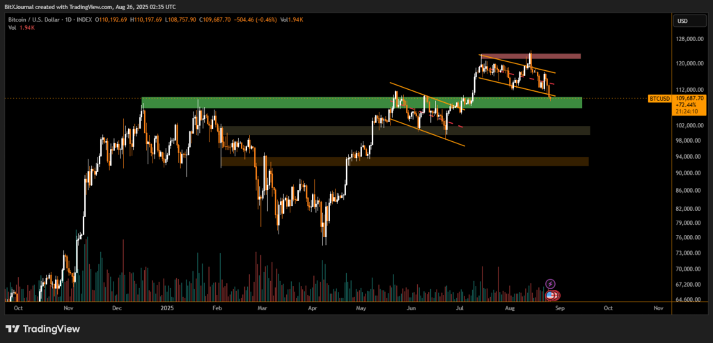 Bitcoin’s retreat below $110,000 underscores fragile market conditions. The coming days will be critical in determining whether bulls can defend the $109,000 support or if the market risks sliding further toward $102,000 and $95,000.