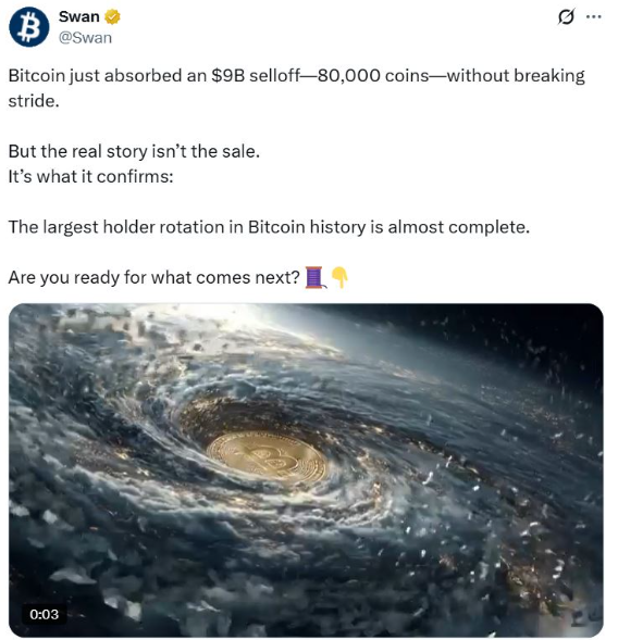 According to Swan Bitcoin, this marks the largest rotation in Bitcoin’s history, with the “old guard” of libertarian tech adopters giving way to a new class of corporate titans and treasury firms. These new holders bring long-term conviction and regulatory legitimacy to the Bitcoin ecosystem.